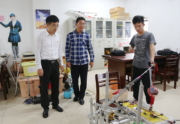 李跃波一行参观指导我校大学生机器人协会参赛作品(摄影:郑江)