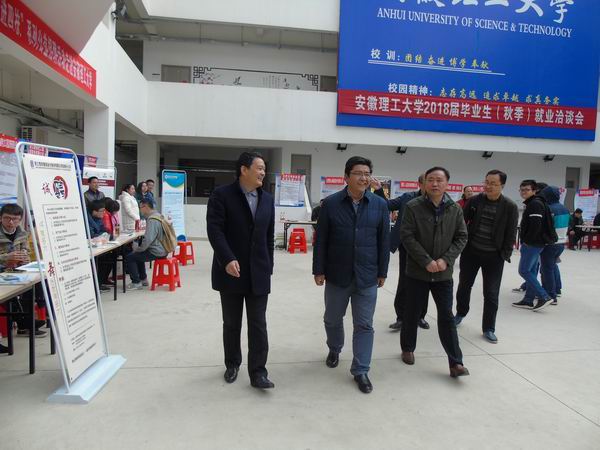 董雨陪同袁江林(左三)在厚德馆招聘现场考察(摄影:张雷 王新林)