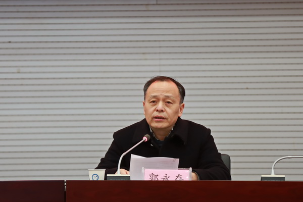 郭永存在总结讲话时强调,学习宣传贯彻习近平总书记重要讲话和全国两会精神是学校一项重大政治任务,全校上下要立即行动起来,抓好下一步的学习贯彻和落实工作,引导党员干部、师生员工学深悟透,让两会精神深入人心。郭书记还就如何学习好贯彻好全国两会精神提出要求,首先要切实强化“四个意识”,始终在思想上政治上行动上与以习近平同志为核心的党中央保持高度一致,坚决维护党中央权威和集中统一领导;其次要大力弘扬宪法精神,广泛开展尊崇宪法、学习宪法、遵守宪法、维护宪法、运用宪法的宣传教育,以此为契机,推动依法治校工作,提高依法治校水平;第三要切实弘扬“四个伟大精神”,学懂弄通习近平总书记关于“中国人民是具有伟大创造精神、伟大奋斗精神、伟大团结精神、伟大梦想精神的人民”的重要论述,紧紧依靠师生员工办学,强化内涵建设,办好让人民满意的大学。