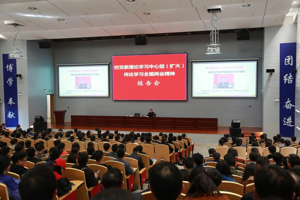 校、院(部)两级党委(党总支)理论学习中心组成员,处级干部,省市两级人大代表、政协委员,民主党派负责人、无党派代表人士,党支部书记,系主任,辅导员,思政课教师和学生代表等400余人听取了报告。