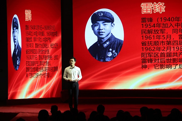 作为主题团课主讲人,化学工程学院制药工程2014-1班团支书许皖同学,穿越历史的长河,从五四运动、抗日战争、社会主义建设时期、改革开放、汶川地震等不同时期,讲述了罗家伦、赵一曼、雷锋、张海迪、徐本禹、袁文婷、焦忠等7位青年榜样的感人故事。人物真实的舞台还原、鲜活生动的舞台再现、感人至深的舞台表演,让在场的每一位观众感同身受、受益匪浅,感动、泪水、掌声成为整场演出的关键词。