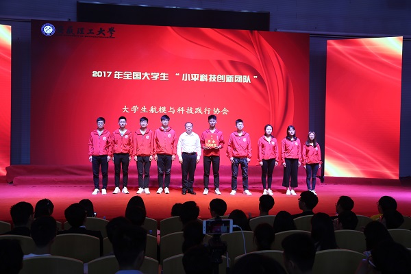 郭永存为全国大学生“小平科技创新团队”校大学生航模与科技践行协会颁奖