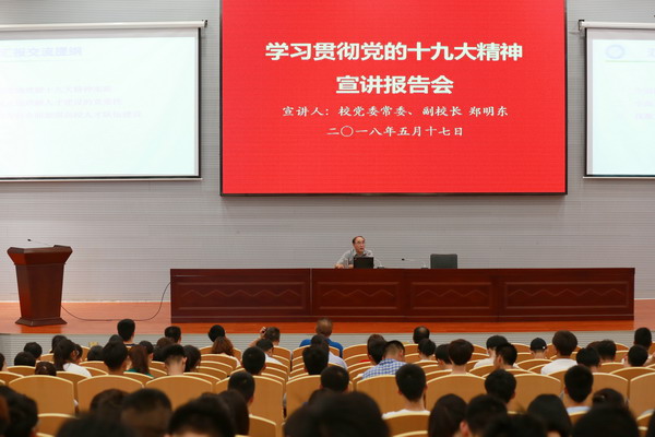 5月17日下午,学校在舜耕会堂举行学习宣传贯彻党的十九大精神宣讲报告会。校党委常委、副校长、校宣讲团副团长郑明东作宣讲报告。