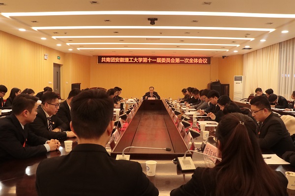 12月8日下午,安徽理工大学第十一届共青团委员会、学生委员会第一次全体会议在舜耕苑会议室举行。校党委书记郭永存出席会议并讲话。