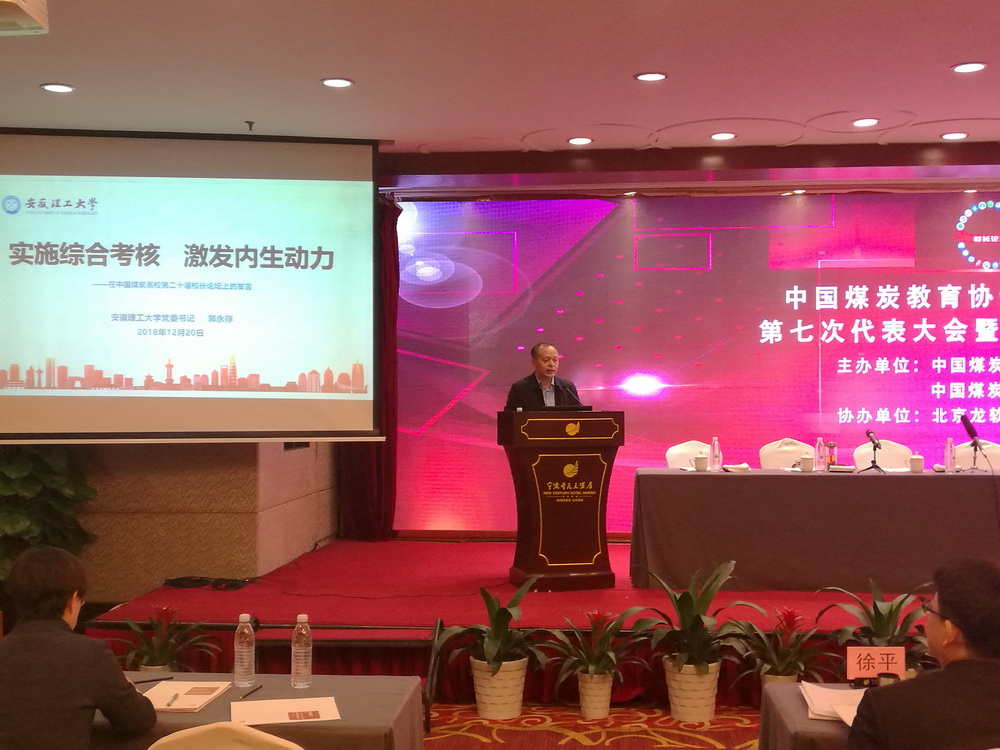 12月19日至21日,中国煤炭教育协会七届理事会第二次会议暨第二十届校长论坛在宁波召开。会议表彰了煤炭高校首届教学名师和先进个人。中国煤炭教育协会副理事长、校党委书记郭永存出席会议并代表我校作了《实施综合考核 激发内生动力》的主题报告。