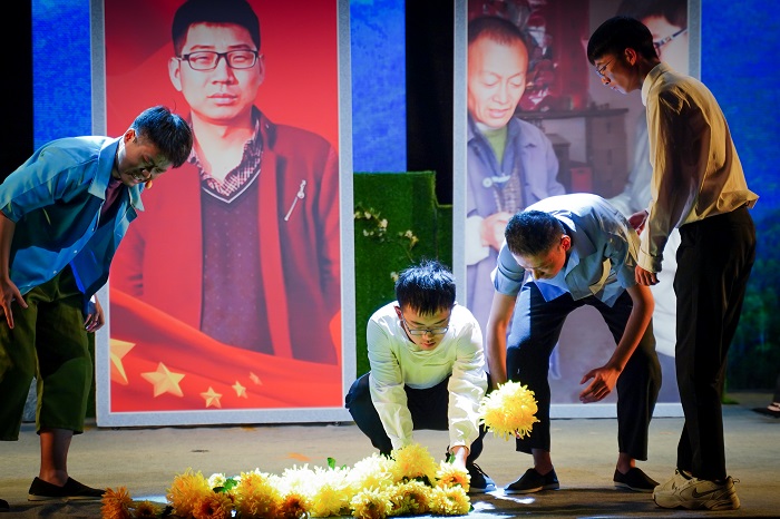 “连续三天的演出在今晚划上句号,此时此刻,我的心绪很难平静。一个多月没有休息的演出排练经历是我大学生活中最难忘最珍贵的回忆。一次次修改、一次次磨合,我们在排练中真切感受着话剧艺术直击人心、浸润心灵的魅力,我们越来越与饰演人物融为一体。无论白天黑夜,还是周末假期,排练厅里都留下了我们最坚定的声音和最执着的汗水。感谢学校给予我们这样的机会,感谢老师们辛苦的付出,同时向刘扬彧学长再次表示我深深的敬意。”该剧刘扬彧的扮演者,来自化学工程学院2017级耿梓越同学在演出结束后激动地说。