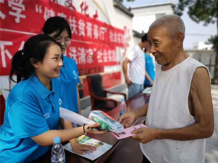 近年来,学校发挥医学专业和人才优势,组织开展义诊、义检、送医送药、救护培训、常见疾病预防知识宣讲等活动。医学院、学校第一附属医院(淮南市第一人民医院)、东方医院集团总院、凤台凤凰医院、淮南市晨光眼科医院、校附属眼科医院等师生、医院专家积极参与,参与人数200余人次,受惠贫困户及村民800余人次。向村卫生室捐赠药品、防疫物品6000元,为参加义诊活动的村民发放价值15000余元的常用处方药和防疫物品。“健康扶贫”使村民们增强了健康生活方式的意识,初步掌握了救护基本技能,受到了当地政府和群众的一致欢迎和好评。