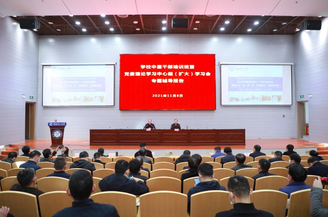 11月8日下午,校党委在舜耕会堂举办中层干部培训班暨理论学习中心组(扩大)学习专题辅导报告会,省第十一次党代会代表、校党委副书记、校长袁亮院士作学习贯彻省第十一次党代会精神宣讲报告。党委书记郭永存主持会议,党委副书记、常务副校长虞宝桃作总结讲话,校领导孟祥瑞、郑明东、宫能平、董雨、梁立昌、周旭、鲁超出席会议。