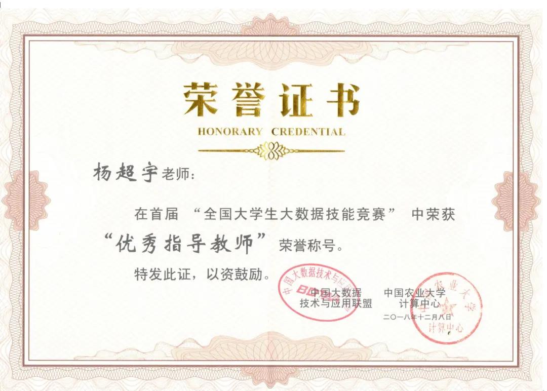 杨超宇对学生成长的关心不止于教学方法的探索,在学科竞赛上他也积极给予学生帮助和引导。2018年,杨超宇曾指导了一支参加了全国大学生大数据技能竞赛的研究生队伍。他从计算机原理和技能到Hadoop平台的应用,从最基础的开始一步步引导着团队的前进方向。其中算法的运行、优化和应用以及数据的分析是竞赛项目考察的重点,杨超宇利用其在海量数据分析方面的专业能力,悉心指导、耐心引领学生,最终团队在比赛中取得了优异的成绩,杨超宇也获得了“优秀指导教师”的荣誉。但谈及印象最深的指导经历,杨超宇说到了第二届“新道杯”安徽省数智人力大赛,“本科阶段是动手能力培养的黄金期,我的本科学生只要他们有参加比赛的热情,我一定会全力以赴的支持他们!”该项比赛二等奖获得者陈雯君说到:“杨老师是一位特别细心,有责任心,有耐心的老师,而且特别专业。”陈雯君团队没有参加竞赛的经历,这次比赛他们团队的研究方向是企业离职人员的原因分析报告,涉及很多要素点,数据众多,数据的逻辑性、关联性和指向性都是难以下手解决的问题。杨超宇作为指导老师,先是帮助团队改进思路,完善了数据模型,直接提升了模型的可行性。因为她们没有参赛经验,杨超宇还亲自演示了PPT的制作和答辩技巧。“备赛期间我们的疑问其实很多,有时我们在微信上请教杨老师,他都会一一解答,有时候是打字,忙的时候会给我们发语音。但从来没有遗漏过一个问题。比赛之后我们都对备赛的过程记忆犹新,对专业的兴趣也更大了!”陈雯君同学感慨地说。陈雯君团队只是杨超宇在17年间教学生涯中带领学生中的一批,他说:“有的学生在上过我的课后对计算机领域产生了兴趣,或者后来因为我从事相关方面的工作,这是一件非常令人骄傲的事情。”一心把自己的所学传授给学生,一心把自己的时间奉献给教书育人,杨超宇从未停下为教育事业奉献的脚步。