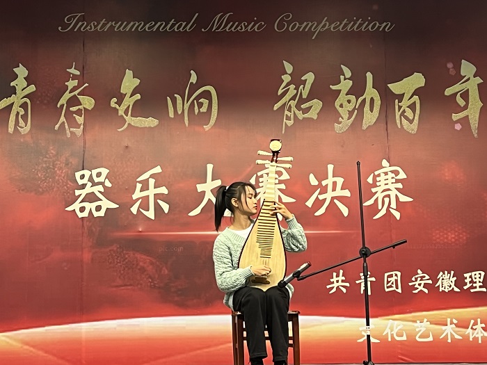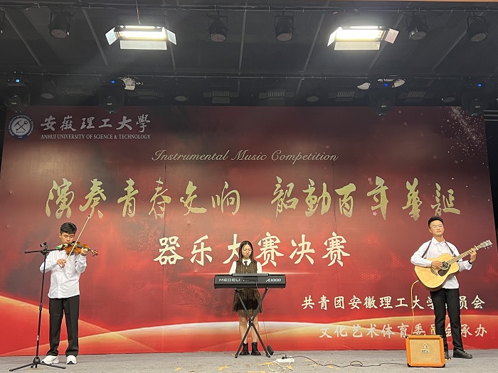 本次大赛以“演奏青春交响 韶动百年华诞”为主题,为广大2021级大学生器乐爱好者们搭建了施展音乐才华、追求音乐梦想的艺术舞台。决赛中,材料科学与工程学院陈金麟同学以一曲琵琶独奏《十面埋伏》拉开了比赛的序幕。安全科学与工程学院肖晗同学带来二胡独奏《战马奔腾》,运用抛弓、大击弓、连顿弓、双弦奏法等拉奏技巧,生动模拟出马嘶鸣声和马蹄声,呈现出一幅战士们驰骋战场、苦练杀敌的场景,使场下观众热血沸腾。电气与信息工程学院李博闻、王文静、刘昶小提琴、键盘和吉他组合,将经典乐曲和流行歌曲完美融合,一会悠扬婉转,一会活泼诙谐,凭借高超的演奏技巧和舞台感染力点燃了观众的激情,观众纷纷伸出双手打起节拍,将比赛现场带入了一个新高潮。