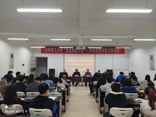 据悉,2021年学校“全国高校毕业生就业能力培训基地”将承担淮南市6所高校共计200名学员培训任务,分3期举办,每期培训班为期5天。经前期精心组织和准备,来自淮南联合大学、安徽工贸职业技术学院、淮南职业技术学院、安徽现代信息工程职业学院等4所高校共计66名学员参加第一期培训班培训。