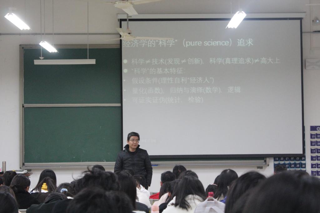 11月23日下午,在明理南110教室,校党委常委、副校长董雨以《经济学的打开方式》为题,为经济与管理学院师生作专题讲座。