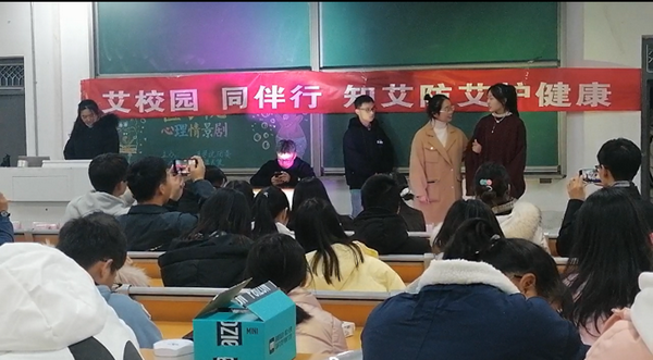 12月1日晚,医学院艾滋病预防知识宣讲团表演了艾滋心理情景剧《爱与艾》,短剧通过虚拟环境中的人物讲述疑似感染艾滋病病毒者的心路历程,再次传播了防艾知识,引导青年学子自觉抵制艾滋病传播的高危生活习惯,加深理解“自身健康第一责任人”的重要含义。