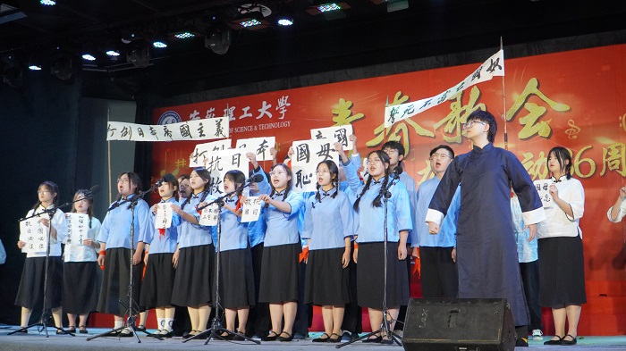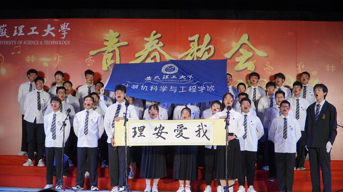 本次歌会共有来自各学院的17支合唱队伍参加,比赛以青春活力、励志昂扬的歌曲为总基调,各队伍携手登台,用青春最美好的声响唱出新时代安理青年深厚的爱党爱国情怀,《明天,你好》、《我们都是追梦人》一首首具有时代气息的“新红歌”依次登场。土木建筑学院演唱的《孤勇者》将86年前那场声势浩大的爱国运动以情景音乐剧的形式展现,演员们高举着救亡图存的标语眼神坚定,士气豪迈,用青春最强音,致敬革命岁月;安全科学与工程学院则根据学院特色组成男生流行歌曲团体演唱歌曲《渴望光荣》,整齐划一的军事动作与热血男儿的豪情表达了青年人渴望荣耀的责任担当,诠释了浓浓的家国情;材料科学与工程学院演唱的《最初的梦想》通过极具艺术表现的四声部混声合唱,向大家展示了高水平的合唱技巧,歌会在外国语学院表演的《仰望星空》中推向高潮,大家纷纷高举手中的灯光唱出心中蓬勃的梦想,放飞心中不灭的希望。在全场合唱中,歌会落下帷幕。