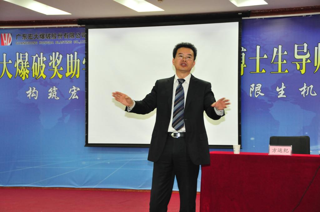 报告会上,郑炳旭董事长以时间为主线,向师生们介绍了宏大爆破的发展历程和主要事迹。2001年由他主持的有“中国第一爆”之称的广州体育馆拆除爆破工程被央视连续15天跟踪报道;他曾负责“亚洲第一爆”———宁波镇海电厂摩天烟囱定向爆破两项工程;他利用一个号称“世界之最”的爆破项目———在距离秦山核电站150米处,爆破80万方石块,以便建第二个核电站的实例向大家讲解了群孔干扰减震技术。