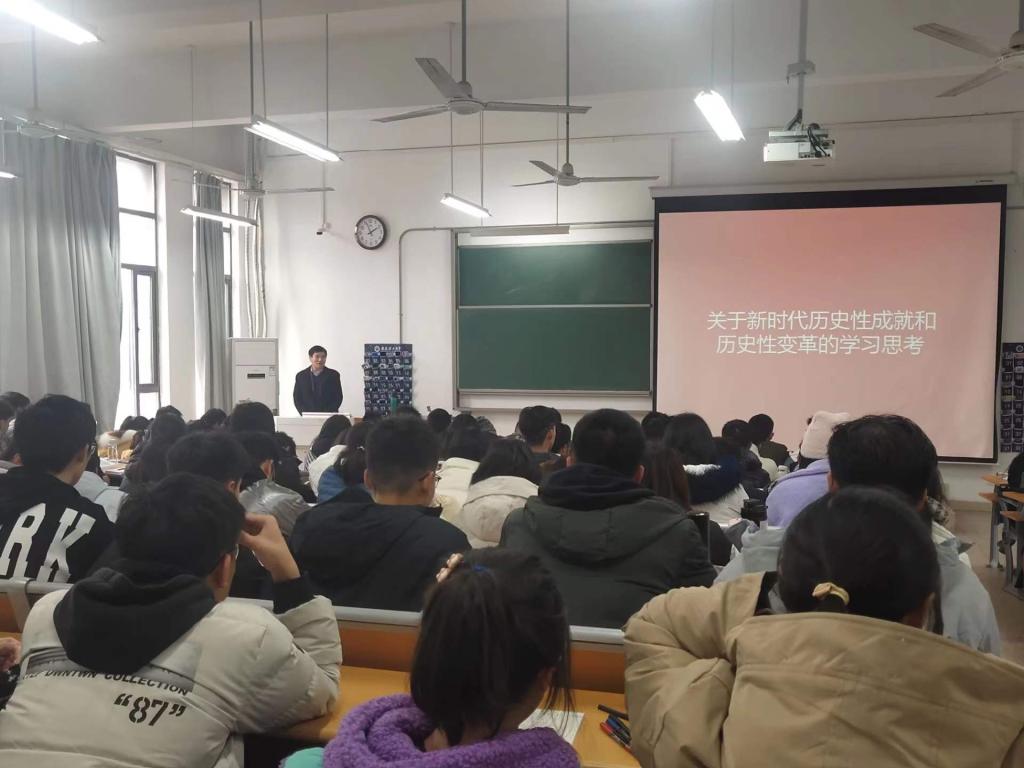 12月16日下午,校党委副书记、常务副校长虞宝桃在天工北104教室为医学院本科生上了一堂主题为“关于新时代历史性成就和历史性变革的学习思考”的思想政治理论课。