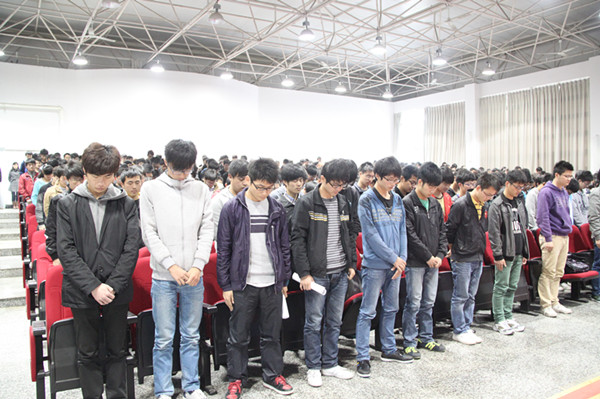 雅安7.0级地震之后,全国人民都表达了对灾区的哀思和关注。为了进一步普及地震科普知识,提高大学生的应急避险能力,增强防震减灾意识,4月23日下午,学校保卫处和学生处联合邀请淮南市地震局新闻发言人、业务管理科科长徐燕,在北校区图书馆报告厅为我校师生作了一场“地震来了怎么办”的专题讲座。聆听讲座的学子们也用特殊的方式向在4.20四川雅安地震中罹难的同胞表达哀思,对地震的相关讯息和灾区的救援进展给予了密切关注。