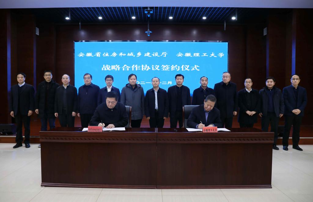 12月29日,学校与安徽省住建厅战略合作协议签署仪式在合肥举行。校党委书记郭永存,党委副书记、校长袁亮院士出席会议。住建厅厅长贺懋燮,厅党组成员、副厅长吴桂和厅总工程师方廷勇等领导出席会议。