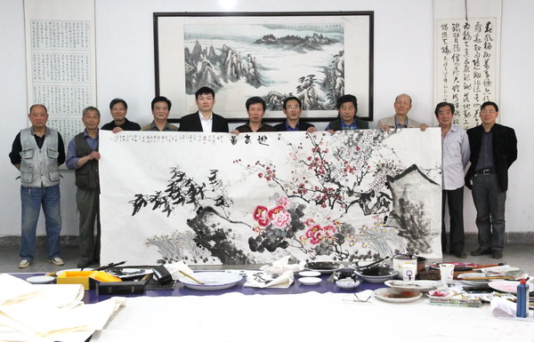 4月27日,王斌、卞昭宏、汪德龙和分院有关成员开展了笔会,众多艺术家联袂创作了巨幅画作《迎春图》、《硕果累累》和书法横幅赠送我校典藏留念。