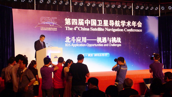 第四届中国卫星导航学术年会于2013年5月15日至17日在武汉国际会展中心召开,会议主题为“北斗应用—机遇与挑战”,涵盖学术交流、高端论坛、展览展示和科学普及等内容。国家有关部门、地方政府领导、卫星导航领域专家、学者,研究机构和企业代表,美国、俄罗斯、欧洲等国家和地区卫星导航系统主管部门官员共2000余人参加了本届年会。我校测绘学院吕伟才、赵兴旺、王胜利老师参加了本次会议。