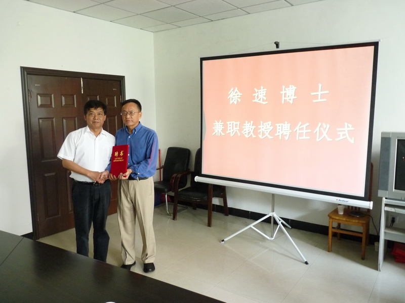 5月21日下午,学校在理学院会议室举行聘任仪式,聘请77级校友、美国银行资深副总裁徐速博士为兼职教授。