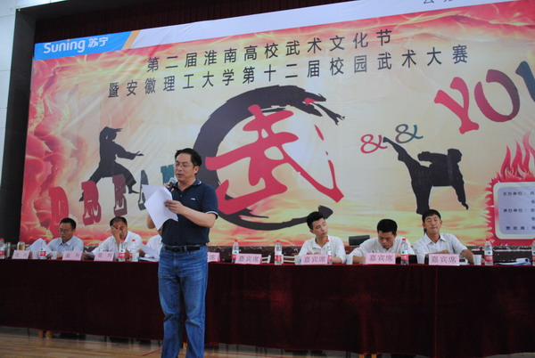 5月25日下午,第二届淮南高校武术文化节暨安徽理工大学第十二届校园武术大赛在经久不息的掌声和雄壮的精忠报国乐声中圆满落幕。出席此次比赛的嘉宾有体育部书记主任杨斌,校团委社团指导老师郑江等。
