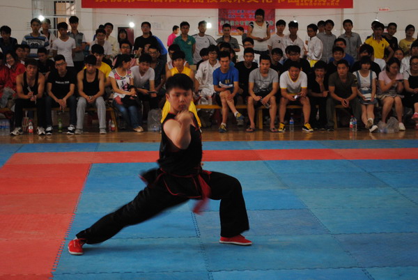 开场节目欢快的节奏,瞬间点燃了全场观众的热情,在受邀嘉宾诚挚的致词之后,主持人宣布比赛开始。刀、枪、棍、剑、南拳、太极等各式套路悉数登场,或激烈,或舒缓,刚柔并济,动静分明,参赛选手全神贯注,精力集中,动作整齐熟练,舞乐和谐,编排新颖,队形多样,变化有序,精湛的表演给全场的观众带来了一场武术文化的视觉盛宴。