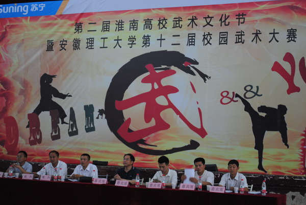来自安徽理工大学、淮南师范学院、安徽工贸学院、淮南联合大学和淮南职业技术学院的大学生武术协会的100余名会员,以及我校校空手道队的队员参加了本次大赛。