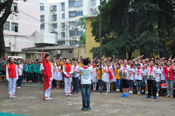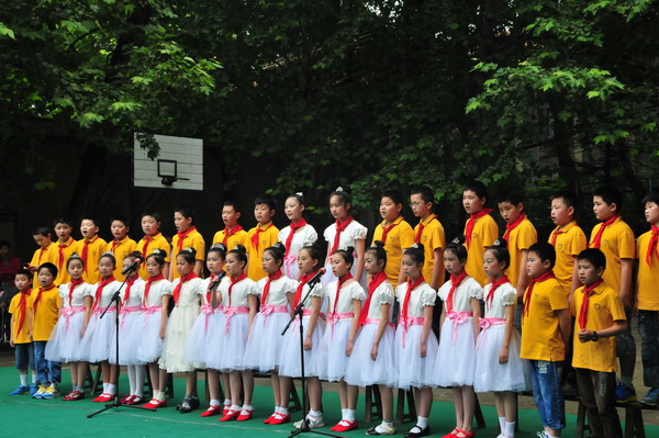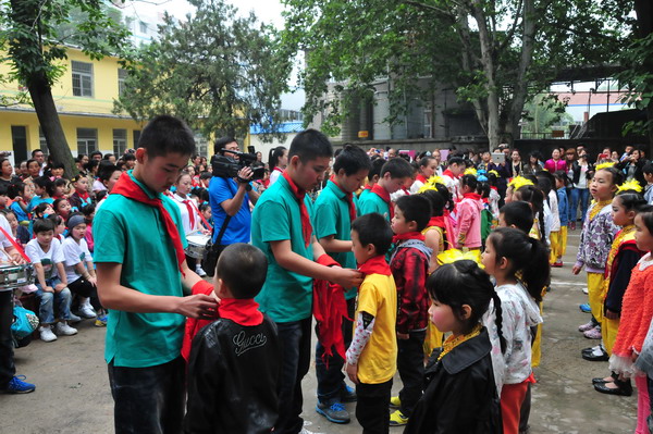 在新少先队员入队仪式中庆祝活动拉开序幕。在少先队的队旗和鼓乐队的指引下,新队员兴高采烈地佩戴上了鲜艳的红领巾。入队仪式以后,小朋友们表演了精彩的文艺节目,一支支美丽的舞蹈、一首首动听的歌曲,让大家如醉如痴,节目表演完后,观众们久久不愿离去。