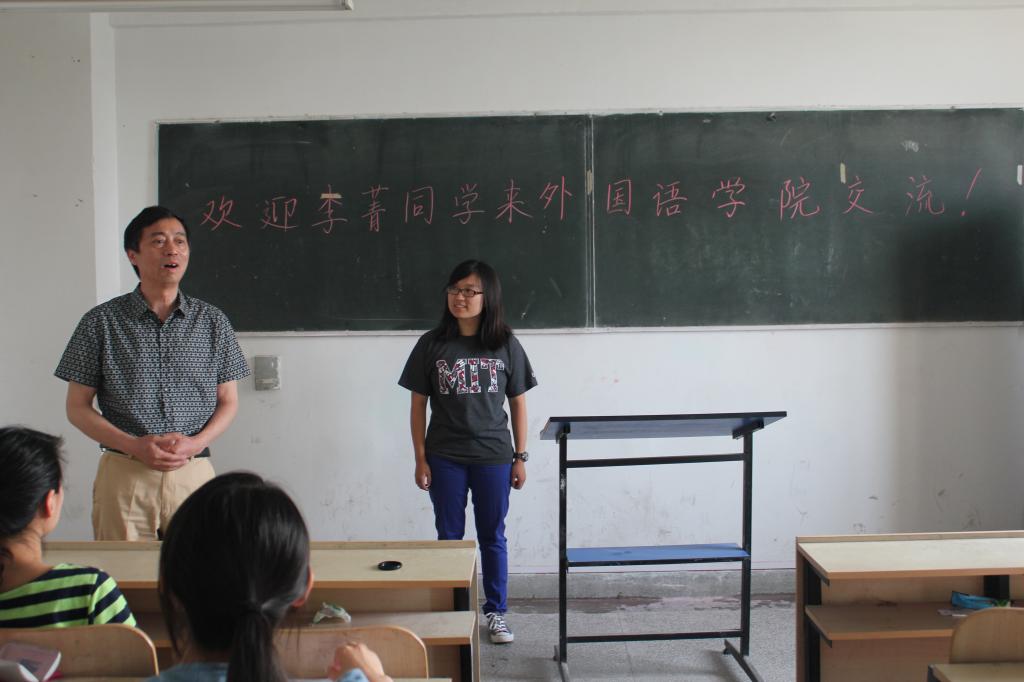 6月3日下午,外国语学院邀请美国麻省理工学院学生李菁在学院会议室与2012级学生开展交流活动。交流会由院长束学军主持,2012级学生班主任邵珊珊、辅导员肖婷参与交流。