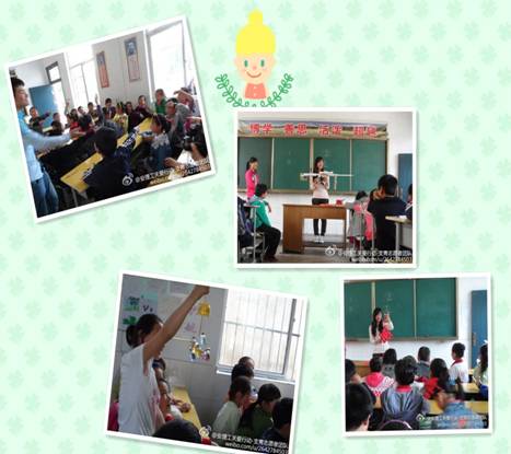 每个人都有梦想的权利,让我们通过放飞自己的梦,来帮助别人的梦飞翔。2011级电气5班211宿舍四位同学多次深入到八公山区张楼小学,开展了留守儿童家访、帮扶、绿色环保宣传、带留守儿童参观校园等志愿活动。他们带着孩子们在校园里参观,让他们切身体验一下真正的大学味道。同学们表示以后有时间会多带这些留守儿童出来,让他们感受到社会的关心,健康快乐的成长。