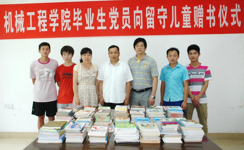 6月18日上午,安徽理工大学机械工程学院党委副书记徐育军、团委书记郭莉带领2013届毕业生代表将216名毕业生党员捐献的257本中小学生课外读物交送到了安徽理工大学团委。这些图书将连同全校各学院团委、班级团支部捐赠的图书一起在今年7月中旬送至安徽理工大学对口帮扶共建的临泉县,并在那里帮扶两所学校各建立1所“共青书屋”。