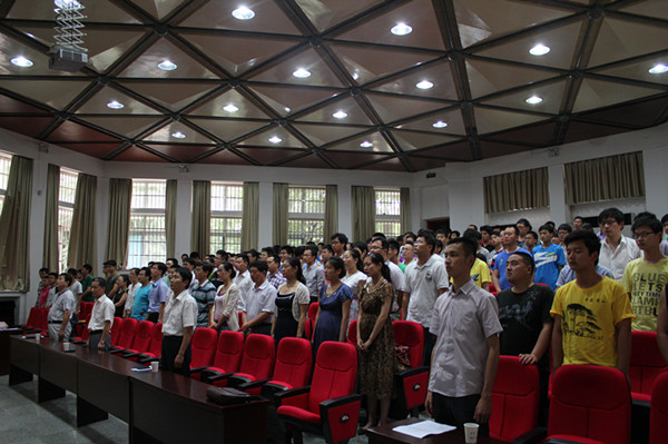 大会最后,全体起立,唱响校歌《大学无疆》。