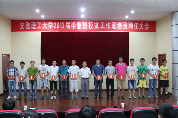 张海军宣读了校友会《关于聘任2013届毕业班校友工作联络员的决定》,决定聘任崔德旺等168位毕业生为我校2013届兼职校友联络员,并希望各位校友联络员不忘学校重托,热心支持校友工作,密切保持与母校校友会办公室的联系,积极参与学校和地方校友会的活动,为校友工作做出积极的贡献。方运纪介绍了校友会的相关工作情况,并强调了毕业班校友工作联络员工作职责。