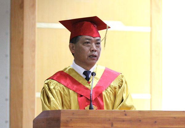 颜事龙在讲话中首先代表学校向全体毕业研究生表示最热烈的祝贺!向悉心指导学生的导师、辛勤养育学生的父母和所有帮助过学生的人们致以诚挚的感谢和深深的敬意!他说:同学们在今天的毕业典礼之后将揭开人生旅途上新的一页,将是放飞梦想、扬帆远航的开始。他勉励同学们要在民族的伟大复兴中成就自己,要在不懈努力中实现自身价值,要在适应社会中快乐生活。