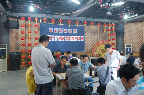 6月29日,由校工会举办的庆祝建党92周年教职工象棋友谊赛在校本部教职工活动中心多功能厅举行,来自各分工会及离退休工作处的9支代表队30余名队员参加了比赛。校工会主席洪江如、副主席夏邦权到现场观看比赛并为获奖代表队及选手颁奖。