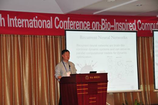 7月13日上午,由我校举办的第八届生物计算国际会议国外知名专家主题报告在安徽黄山香茗国际酒店新安江厅举行,本次会议邀请了3位国际著名教授,分别是来自中国香港大学的Jun Wang教授、澳大利亚巴拉瑞特大学的David Gao Yang教授和美国亚利桑那州立大学的Hao Yan教授。他们作为本次会议的特邀嘉宾分别就生物计算中的网络计算、神经网络、网络计算优化等方面进行了深入的探讨。