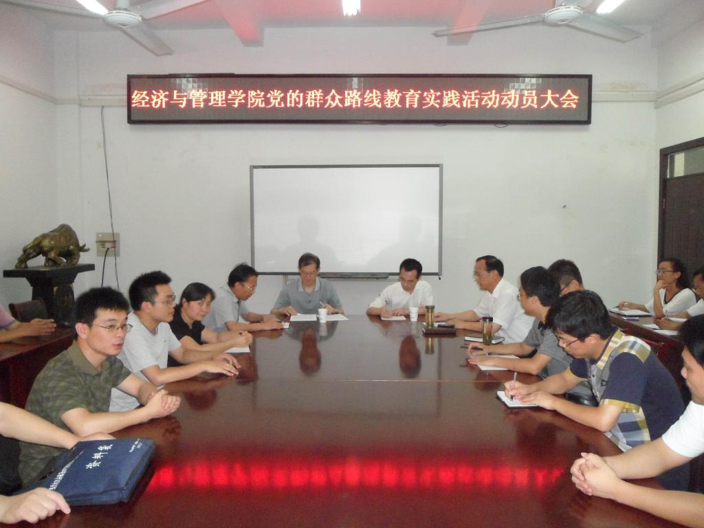 7月15日下午,经济与管理学院党委召开党的群众路线教育实践活动动员大会,校党的群众路线教育实践活动第七督导组长王其东、副组长冯定昌参加大会。会议由院长何刚主持,学院全体党员、党外人士代表参加了会议。