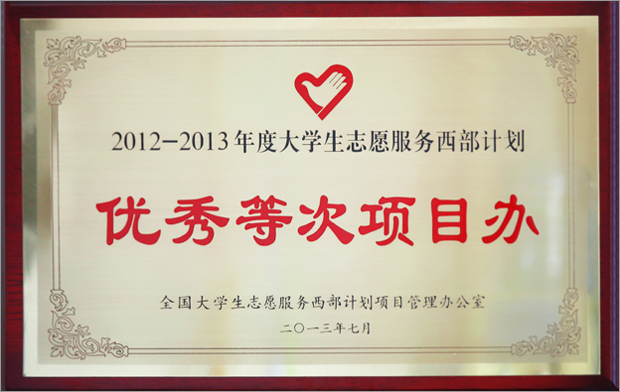 近日,共青团中央、全国大学生志愿服务西部计划项目办共同组织开展了2012-2013年度西部计划服务县和高校项目办绩效考核工作。经过全面考核,安徽理工大学被评为全国大学生志愿服务西部计划“优秀项目办”荣誉称号。