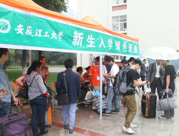 在总结往年“绿色通道”工作经验的基础上,为了使2013级新生入学“绿色通道”更加便捷和顺畅,前期在迎新协调会上,学校各有关单位已就“绿色通道”的开设及办理事宜进行了谋划,并专门下发了通知对“绿色通道”工作进行了部署,简化工作流程。具体来说,实行学生处、财务处、后勤资产处、各学院等多部门联动,切实保证贫困新生顺利入学。“绿色通道”的办理对象:被我校录取,且在报到时无法交纳学费和住宿费的家庭经济困难新生。学生先向所在学院提出“绿色通道”申请并提交相关证明材料,学院进行初步审核确认,指导学生填写《安徽理工大学“绿色通道”特困新生暂缓缴学费申请表》,并由学院指派志愿者带领其走新生入学“绿色通道”办理入学手续,办理流程依次为“学院初审-学生处复核-财务处办理缓交费-后勤宿管中心办理入住”。校学生处还制作了大幅宣传展板,摆放在新生入学报到现场,注重加强对国家资助政策和我校学生资助政策体系的宣传,并安排专人做好新生及家长的政策咨询工作,妥善处理有关问题,积极帮助其解决实际困难,确保家庭经济困难新生顺利入学、安心学习、正常生活。