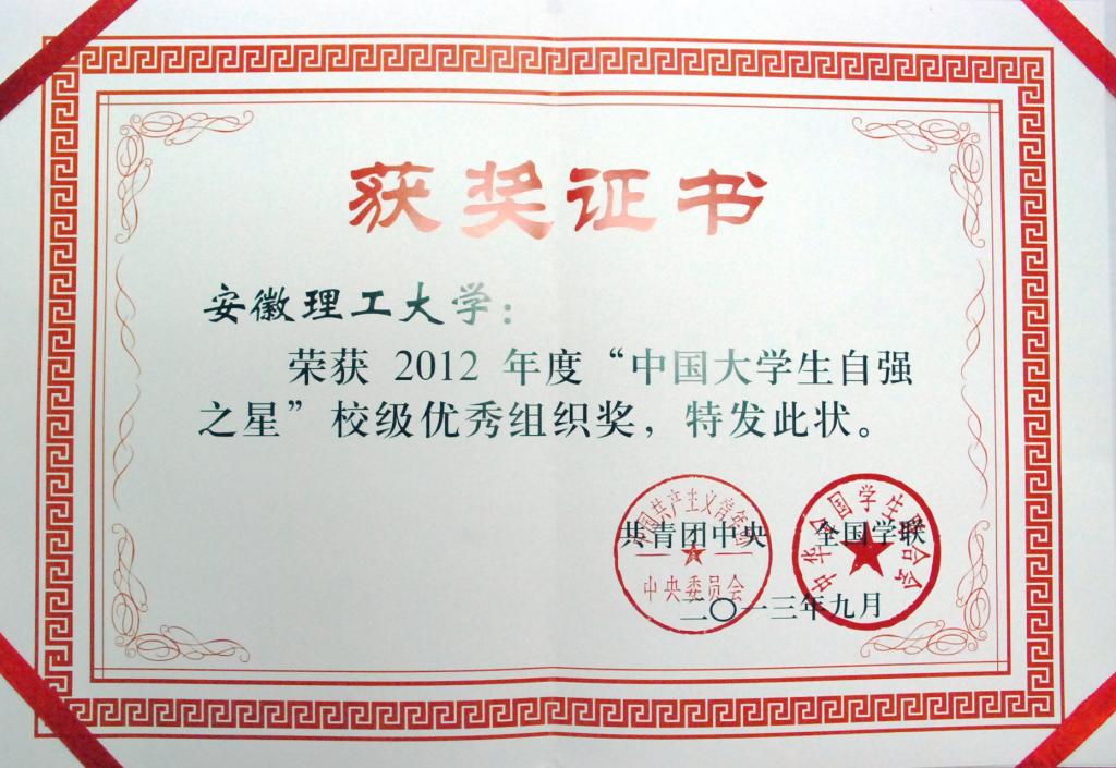 我校荣获2012年度“中国大学生自强之星”校级优秀组织奖