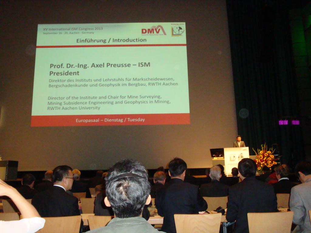 由国际矿山测量协会主办,德国亚琛工业大学与德国矿山测量协会承办的第十五届国际矿山测量大会于9月16日至20日在亚琛工业大学举行(XV International ISM Congress 2013),来自德国、美国、澳大利亚、南非、俄罗斯、中国等20个国家约400人的矿山测量工作者参加了此次大会。大会开幕式由本次大会主席国际知名矿山测量学家亚琛工业大学矿山测量研究所所长Axel Preusse教授主持,亚琛市长及亚琛工业大学校长到会致欢迎辞。