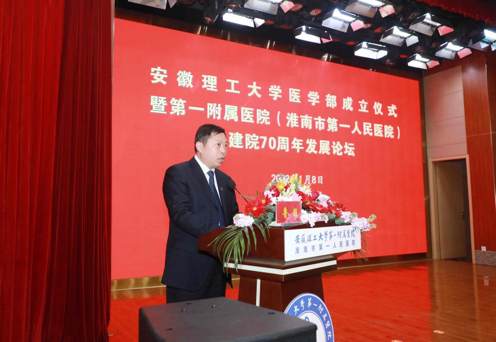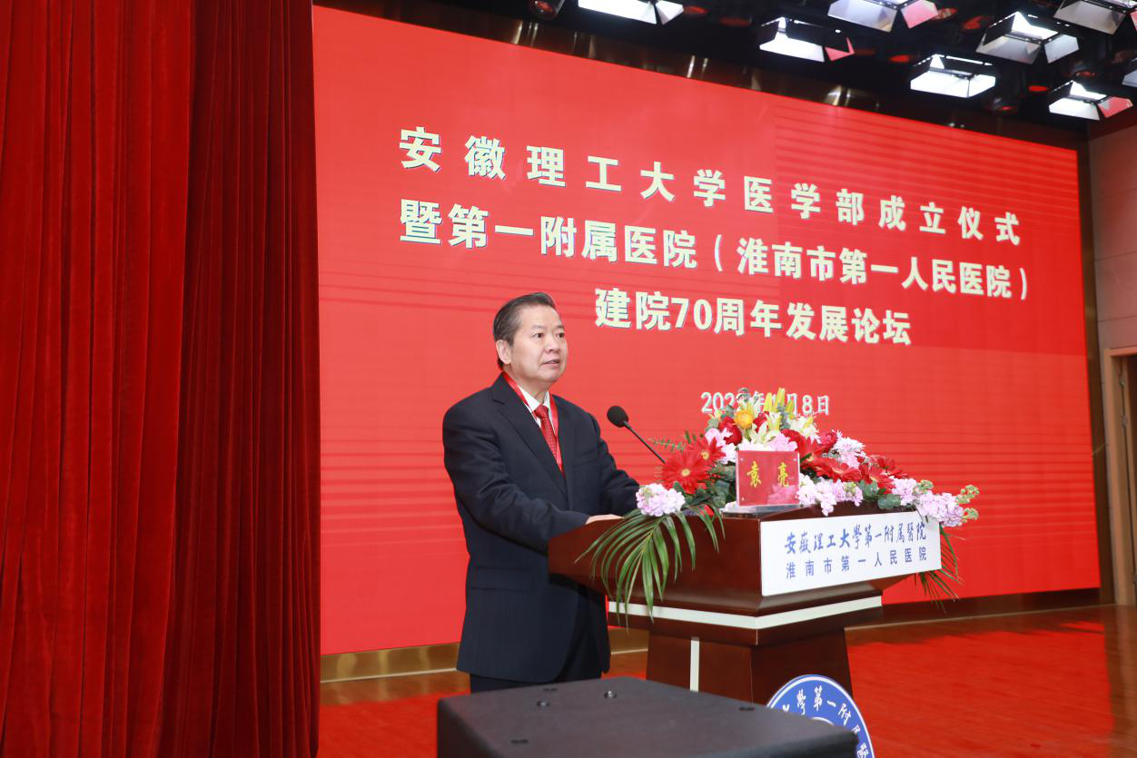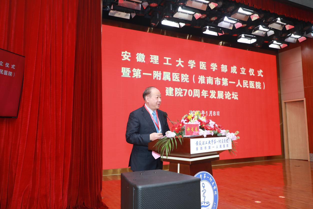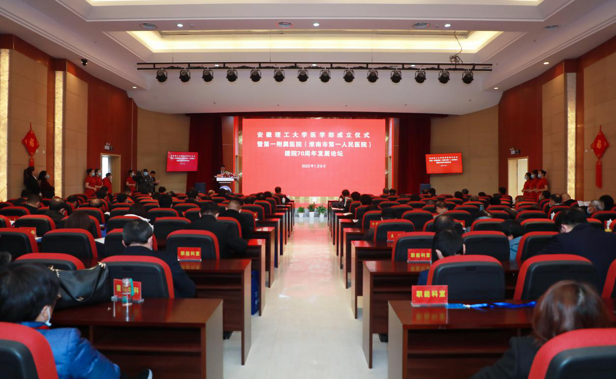 厚德精勤跨越七十载,创新卓越再绘新宏篇!1月8日上午,安徽理工大学医学部成立仪式暨庆祝第一附属医院(淮南市第一人民医院)建院70周年发展论坛在医院门诊楼学术报告厅举行。与会领导、专家和师生共同回望医院70年风雨之路,展望“安理特色”医学发展美好前景!