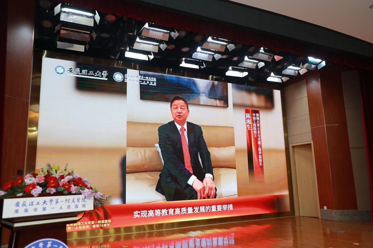 中国工程院院士,中国矿业大学(北京)教授,学校校友彭苏萍,中国工程院院士,深圳大学土木与交通工程学院院长、学校校友陈湘生,中国工程院院士,上海交通大学党委常委、副校长,上海交通大学医学院院长、党委副书记范先群通过线上方式向论坛发来贺辞并祝愿学校医学教育及学校第一附属医院(淮南市第一人民医院)以建院70周年为契机,依托安徽理工大学和淮南市提供的优质平台,更好的服务学校学科建设及地方社会发展。安徽省第二人民医院、合肥市第一人民医院、亳州市人民医院、安徽医科大学第一附属医院、皖南医学院第一附属医院等兄弟院向论坛及医院建院70周年发来贺信并祝愿医院不断取得新的更大成绩。