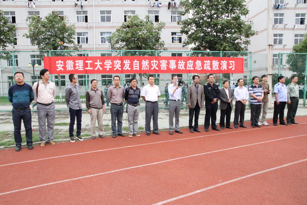 演习总指挥、副校长王其东宣布应急疏散演习正式开始(摄影:吕祥勇)