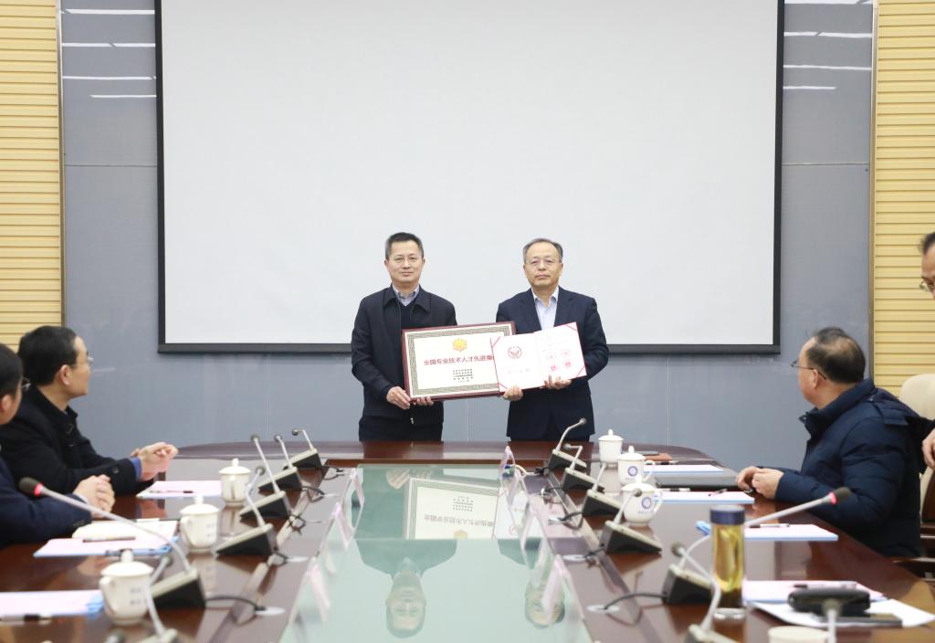 会上,程连政为学校颁发了“全国专业技术人才先进集体”证书和奖牌。
