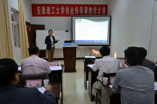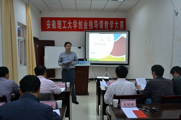 为贯彻落实《关于举办首届安徽省高校创业指导课程教学大赛的通知》精神,进一步推动学校创新创业教育和创业指导服务,加快建立和完善创新创业教育课程体系,提高创业指导教师教育教学和指导学生创业实践水平,9月28日下午,学校在校本部大学生创业孵化基地培训室一举办了创业指导课程教学大赛,共有来自全校8个学院的11名老师参加了比赛。教务处、人事处、学生处、学术出版中心、就业处和部分学院负责人应邀担任评委。