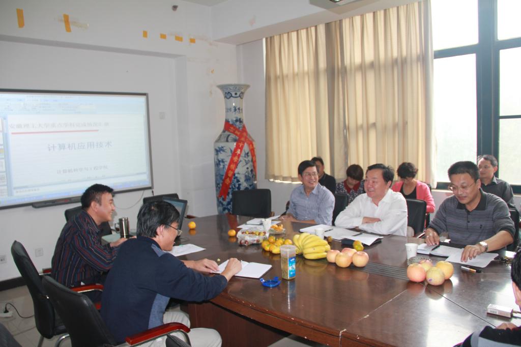10月7日下午,副校长刘泽功教授带领校发展规划处处长殷志祥一行到计算机学院就“计算机应用技术”校级重点学科建设情况进行调研。