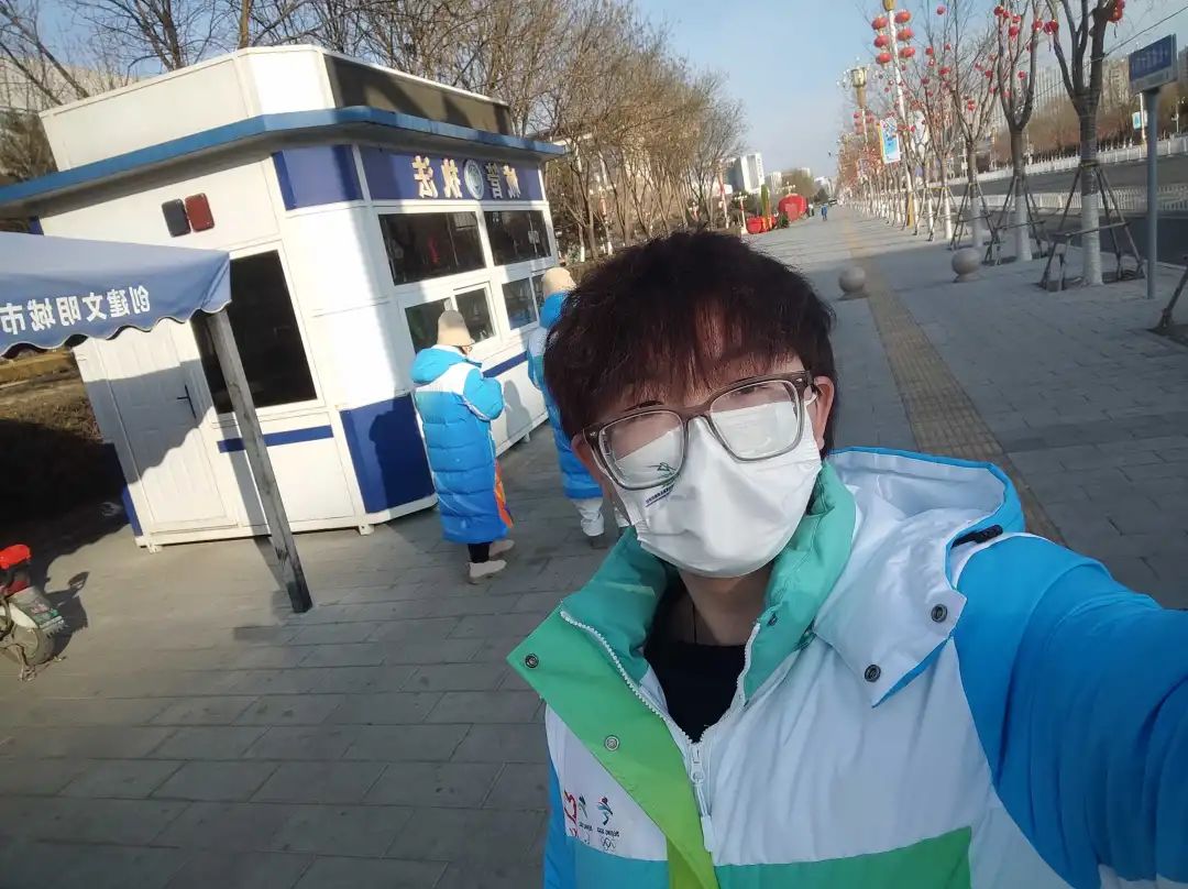 除了帮助疏导市内交通,给路过的市民做冬奥宣传,给外地游客发放张家口的旅游宣传册、发放防疫物品和运送物资等工作外。志愿服务期间,宋恩周还要每天九点开始值班站岗执勤,但作为志愿者,需要八点五十之前集合到岗。宋恩周家距离市政府较远,得坐至少近一小时的公交。隆冬时节,寒风凛冽,正是张家口一年中最冷的日子,气温每天都在零下15度左右,为了赶上车及时到岗执勤,宋恩周差不多7点就得起床,顶着严寒去站台提前等车,这样的作息他持续半个多月,从未迟到。“有一次赶上下雪,我害怕第二天公交车来得慢,于是7点钟就自己从家里出发了,一路边走边跑,结果也准时到服务点了。”宋恩周笑着讲,“志愿服务期间,每天都会坚持早睡早起,不能熬夜,虽然累了点,但是真的很充实很满足。”