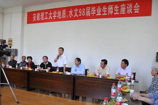 在这天高气清,金风送爽之时,安徽理工大学水文地质、煤田地质94级同学毕业15周年座谈会于10月4日下午在地球与环境学院201会议室隆重召开,校党委副书记王洪、校友办主任方运纪、地球与环境学院党政领导、部分离退休教师出席座谈会。